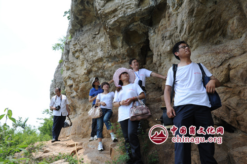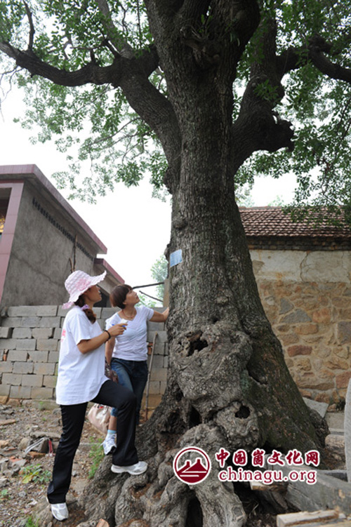 考察崮下桑子峪村中的流苏古树 丁军国 摄