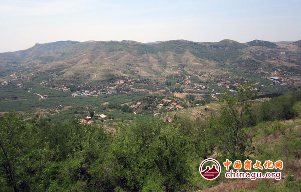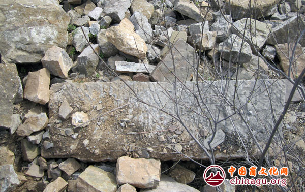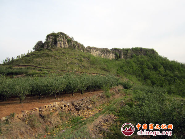 我们是从靳家峪村徒步东山转西而上的。在靳家峪村时有位59岁的高姓村民告诉我们,此崮是南与耿家庄村之间的一座界山,所以老人们起名为界石崮。巧合的是,我们行之该崮东首的崮头下时,有位驾驶农用三轮车的耿家庄夫妇来此苹果园疏果,问及崮名的来历。他说,因此崮是我们村与靳家峪村的界山,所以称为界石崮。我想,崮是两县、两镇、两村之间的界山的有很多,为什么唯独这座称之为界石崮呢?也许是给崮起名字时候就和现在的商标注册一样啊?后来查《沂源县地名志》一书,书曰:“因其崮顶为窄而长的悬崖,远眺像田地中的‘界石’一样,以此得名界石崮。 人们来此登崮,多是从崮西北的山脊处,而我们选择的则是崮的东首。