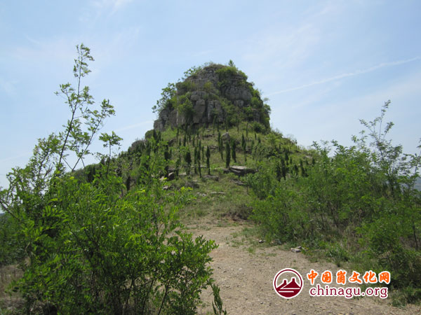 登崮时苏先生作前导,郭女士居中,我殿后。我们三人相互照应着从悬崖间的缝隙中慢慢钻过,拽着摇曳的树枝,抓住岩石的棱角小心翼翼地攀上攀下,忽左忽右,越过四道崖豁达才能到达崮的主峰下。回望这段悬崖顶,让人胆颤。郭女士曾说,吓得她腿肚子都转了向。可苏先生还说她笨,不幽默。我想这也许是暗点赞语吧。但我敢断定,这绝对是她一生中走过的最难的山路,所冒的最大的风险吧,可她终于征服了这座陡峭的山崮。但是我要告诉大家,若在雨雪天气和有风的日子,是万万不能从此登崮的。