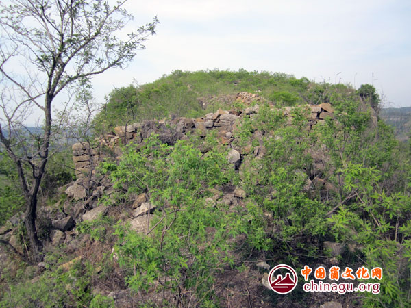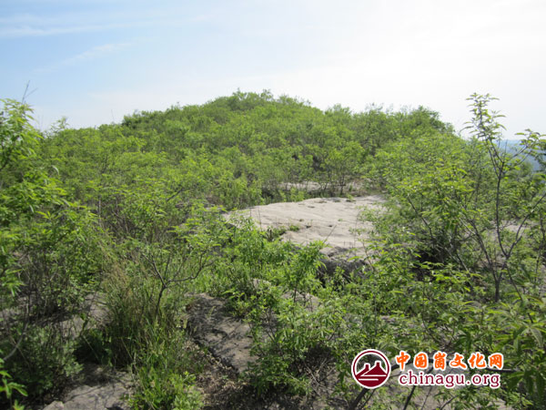 在崮顶的西部,也是长而窄的悬崖,但比东面的悬崖来说,不是很险。平坦处有石头房子,但已倒塌,乱石中长满了茂盛的荆棵,其石还是黑黑的颜色,围寨的遗迹尚存。据当地人说,此崮早年周边的百姓在此避过匪。那时候缺医少药,崮上人得了皮寒症疟疾,一阵冷一阵热的,精神恍惚,老是打摆子。有人就地生火取暖,不小心把储存的粮草、衣服燃着了。就是这一把倒霉的火,导致被攻破,断送了崮上许多人的性命,现在崮上的黑石头就是那时候连熏带烤的。我猜测,那时候崮上应该早就有了荆棵,用荆棵叶子煎水代茶饮用七天,疟疾病就能痊愈。可惜在那个战乱年代,崮上熟悉荆棵药用作用的人一定是没有的,不然的话,还能酿出这种悲惨结局?
