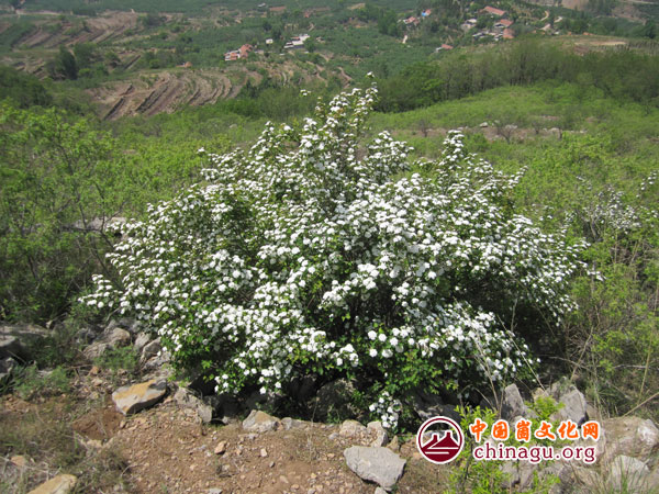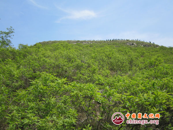 荆棘混生,是为规律。但在此崮,棘却没影,可谓荆棵的天下、小乔木的庄园。蓝天,白云,青石崖。红花、绿草、黄荆棵,真是秀色可餐。