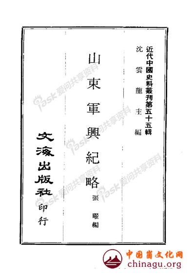 穆老师提到的这本书叫《山东军兴纪略》。该书先是管晏编辑,湖南善化张曜定稿,后来北京大兴人张曜任山东巡抚时纂订。以后此书有些版本遂不著撰人姓名。该书记述太平军、捻军在山东的活动,当地幅军、教军等起义,以及咸丰、同治年间清政府用兵山东始末。书中分十目五十篇,十目为:粤匪,皖匪,土匪,邱莘教匪,降众,乡县教匪,幅匪,淄川匪,黄崖匪,团匪。