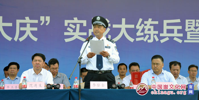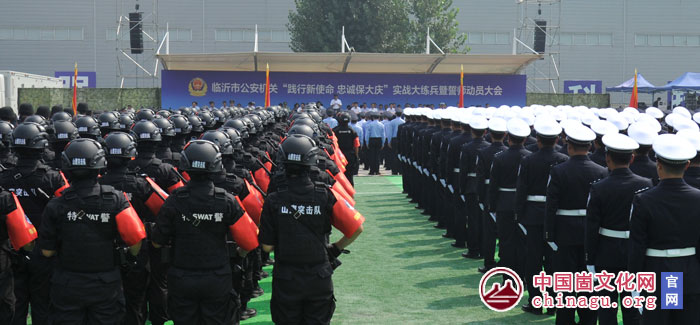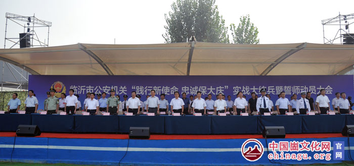 崮文化网讯 9月8日上午,临沂市公安局隆重举行全市公安机关“践行新使命 忠诚保大庆”实战大练兵暨誓师动员大会。市委书记王玉君出席大会并讲话,孟庆斌、徐涛、杜德昌、王行华、范连生、李旭光、于晓东、蒋万云、陈一兵、王荣茂等军地领导及省委督导组联络员靳兆亮出席大会并现场观摩。市政府副市长、市公安局局长李登全主持大会。