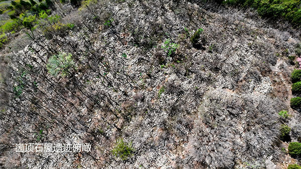沿山梁攀至崖根,翻上崮顶,映入眼帘的便是掩映在树林荆棘丛中大片石屋遗迹,周边应有围墙、寨门、垛口等。经过长期的风雨侵蚀及人为破坏,石屋、围墙早已坍塌,成为一片废墟,只有石屋或大或小或方或长的屋框轮廓,还能大体看清。山寨面积很大,在崮顶转悠了一大圈,也没能走遍。寨顶东西长约500米,南北宽约400米,由东北向西南倾斜,面积大约两千平方米。 该崮的名称,《蒙阴县地名志》(1983)说是“因富姓在此筑有山寨”而得名“富家寨”,《蒙阴县志》(1992)也记载为“富家寨”,这是错误的。该崮的名称,是因傅姓首先在此筑寨而得名“傅家寨”,在旧志中均称“傅家砦(寨)”,如清康熙及宣统《蒙阴县志》均记载:“傅家砦山,在城东南三十里。”所以该崮的名称应是“傅家寨”,后讹为“富家寨”,反而成为官方称呼了。