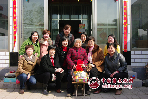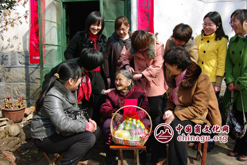 女职工代表与88岁的伊廷珍老人合影留念
