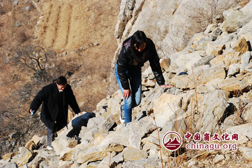 会员们在陡峭的崮坡上攀爬