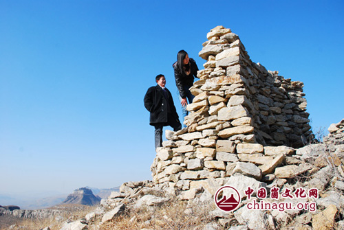 崮文化研究会会员对“古堡”进行细致考察
