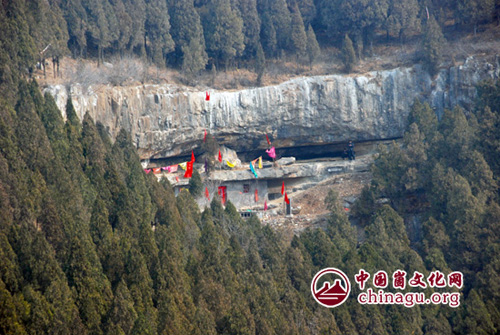 岩壁上绿树掩映中的王母娘娘庙 丁军国 摄