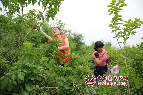 崮顶植被茂盛,野桑树上挂满了紫红色的桑葚。 丁军国 摄