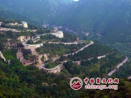 此前,我在不同的媒体上见过青州的“九龙盘”,每次总给我带来振奋与感动。没想到它就在去摩云崮的山腰。如今当汽车载着我驶入九龙盘时,带给我的又是一种更大的惊奇。回想以前走过的长征路上的“老山界”和“滇缅公路”上的盘山路,都远不及这仰天山盘山公路的气势雄伟。汽车弯来弯去,蜿蜒盘旋,自觉是一种难得的经历、刺激与感受。九龙盘全长3300米,宽6米有余,蜿蜒回环十二折。似群龙起舞飞升,直上山巅,故以九龙盘命名。循山盘转,无限风光尽在眼前闪现。群山叠翠,涧溪闪闪;山如画屏,林深似海。摩云崮昂首成南天一柱。未及崮跟,我已心旷神怡,忘乎所以了。