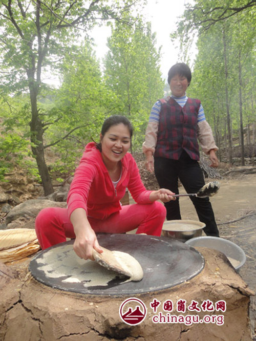 连日来,来自北京、上海等全国各地的游客和媒体记者纷纷来到垛庄镇椿树沟村观看品尝原汁原味“山东煎饼”,他们来到这里学推磨、烙煎饼,体验到了烙“山东煎饼”辛苦与快乐。(匡秀福)