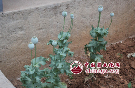 村民在墙角种植的罂粟