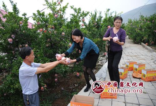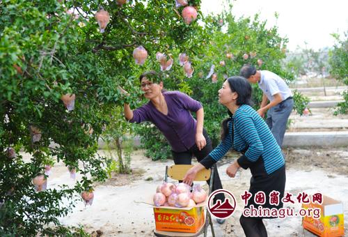 游客在云蒙石榴采摘园体验亲手采摘乐趣
