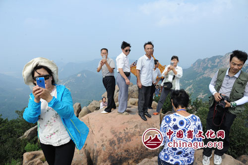 在沂山景区的热情支持下,采风团成员一行先后对东镇庙、玉皇顶、歪头崮、狮子崮、百丈崖等5处景点进行了实地考察。对沂山景区群峰中的歪头崮、狮子崮,逐一登顶,对两崮的造型特征、植被分布、历史文化和人文遗存等进行细致采访和探查,与岱崮地貌群崮相比,这里的崮海拔高度和崖壁垂直高度更高。崮顶庙宇、摩崖石刻、天池等人文遗迹颇多,文化底蕴丰厚。通过采风考察,使大家进一步了解崮文化的渊源和博大精深,加深了崮文化在沂蒙地区文化旅游产业发展中的重要地位的认识。(丁军国 摄影报道)