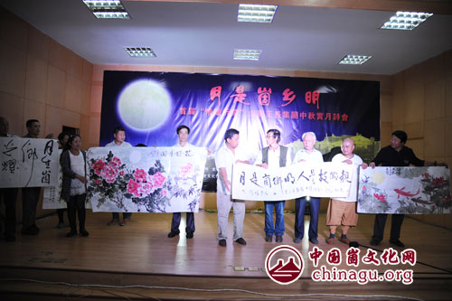书画家王守秘、王克桓、曹孟龙、王赵霞、石磊向诗会赠送书画作品。 丁军国摄