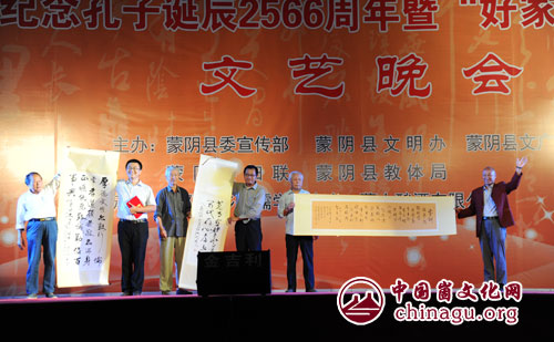 “好家训”一等奖获得者魏宗湘“沂蒙家训”二等奖获得者王家安;三等奖获得者王相云上台领奖。丁军国摄