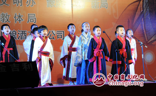 弘儒学堂的学生们表演古韵吟诵《礼运》、《大学》。丁军国摄