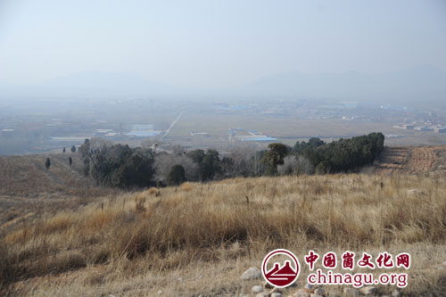 看了玉皇庙,又怎能不瞻仰玉皇山?玉皇山就在玉皇庙后。玉皇庙建在玉皇山的怀抱里,玉皇山就在庙后边。从庙宇右边一条小路上行,再左拐,沿一条两个辙印的山路走,右边有一块地,那地是种过花生的地,看样老百姓在秋收时节,能把三轮车开到山上。走过那片地,再向北上行,就是坡坡的山了,这山就是著名的玉皇山了。山不陡,一口气能走到山顶。山上没有树木,只有漫山坡的黄草。初春的风很冷,风在山上更是猖狂。山风肆虐,刮得人东倒西歪,冻得人瑟瑟发抖。崮文化网的会员,匆匆合影下山。初春满目荒草,枯枝败叶,但站在山顶,还是看到了苍茫画面:北望群山连绵,大气磅礴,水库,村落是镶嵌在群山怀抱里的明珠。哪里有山有水有地,哪里就有人类生生不息。人是大自然的主宰。