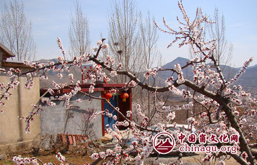 来到百年杏园的最高处回望,整个大洼村便都淹没在了一片花海中了。在往回走的途中,经过一处民房。一位年逾花甲的老人悠闲地坐在门口,满脸微笑的看着我们。门口旁的一株杏树正在熙暖的阳光中绽放。老人向我们介绍,过去大洼村由于地处比较偏僻,人们生活过得十分窘迫;现在交通便利,村里产出的鲜杏增加了不少收入,很多人都买了汽车、盖了新房。