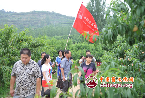 崮文化网采风团走进金泉峪(石槽)桃园采风。