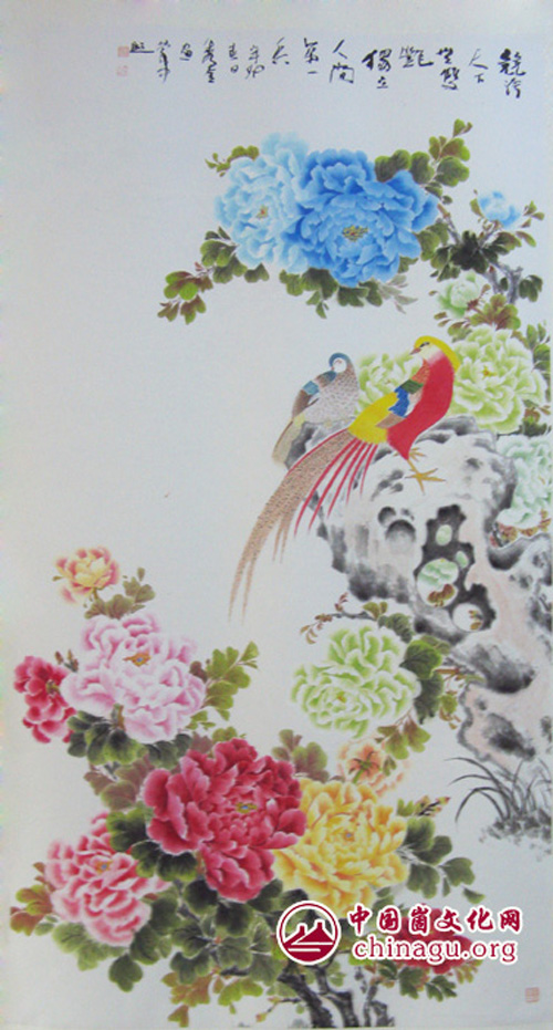 公秀奎,1965年生于山东省蒙阴县藏福山下的坦埠村。2008年,一个偶然的机会,她从网上发现有教国画的视频教程,兴趣使然,她开始利用网络平台,闲暇之余她悉心揣摩,逐渐掌握了花鸟画的基本技法和绘画要领。经过几年不断的学习和探索,她结合自身对自然的题悟和领会,以涓柔的线条、灵动的笔墨,绘红牡丹、白牡丹、蓝牡丹、紫牡丹,使“千娇万态破朝霞”之牡丹画跃然纸上,或争奇斗艳,或灿烂绽放,或亭亭玉立,凸现出牡丹雍容典雅的高贵气质。