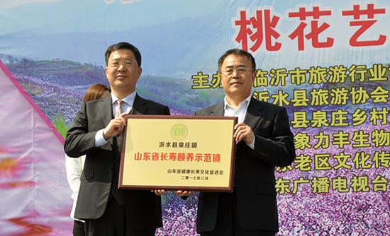 崮文化网讯 4月2日,在山东沂水第六届桃花节艺术节上,举行了“长寿颐养示范镇”授牌仪式,泉庄镇荣获“山东省长寿颐养示范镇”称号。
