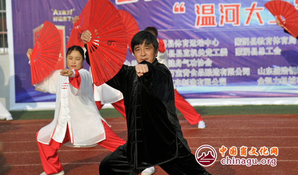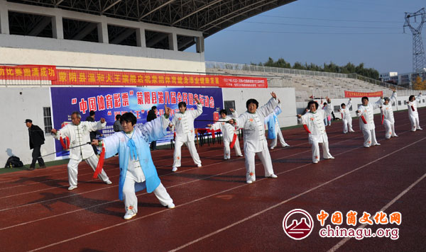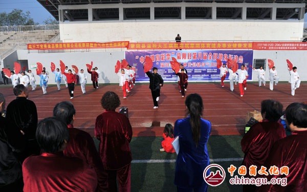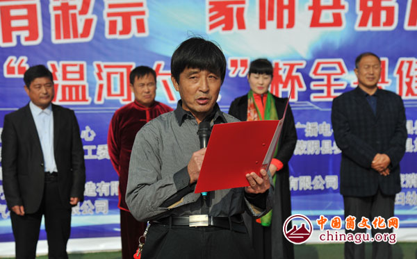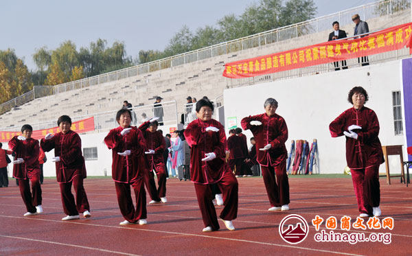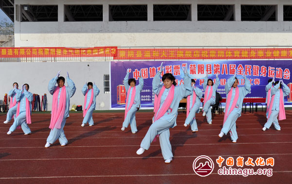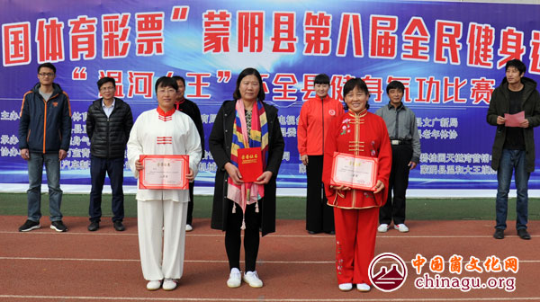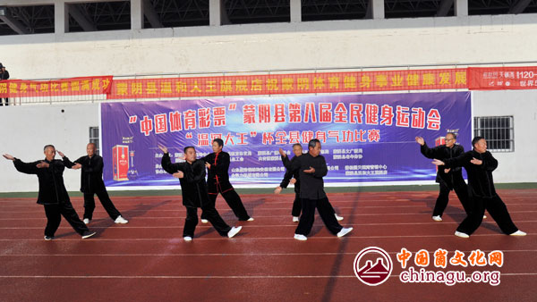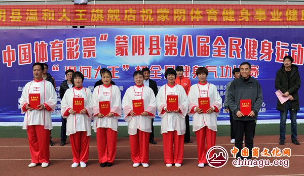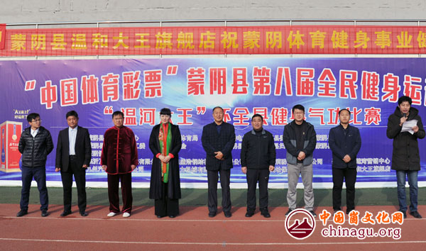 崮文化网讯 11月11日,初冬的清晨云淡风轻,天空湛蓝无比,“中国体育彩票”蒙阴县第八届全民健身运动会,“温河大王”杯全县健身气功比赛在县体育馆隆重举行。