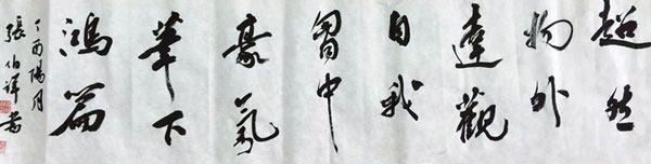 大凡能把字写好的人,都是有慧根的人,而能持久的写好,持久的变化精进,就是修养的事情。人不能完全靠自己的慧根灵性混一辈子,我们周围的确有很多聪明的人,但很多人自己把自己荒废了,不能精进,便回原始,便会被很多浮在表面的事物所吸引,便自甘堕落。张伯祥就是一个有慧根的人,但他更多的是一个自省自静自得自变的人,是一个能持久坚持的人,这才是他书法事业发展的根基。