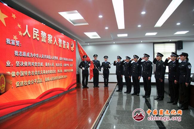 今年随着6名新警的到来,为蒙阴公安注入了新鲜血液,这是蒙阴公安活力的源泉,更是蒙阴公安发展的未来和希望。在欢快奋进的音乐声中,青年民警从荣休民警代表熊淑同同志接过“薪火相传,砥砺前行”的鲜艳红旗。接着,6名青年民警进行了集体宣誓。铿锵有力的誓言,诠释了新警们初生牛犊不怕虎的气魄和为蒙阴公安事业不怕困难砥砺前行的战斗风貌。