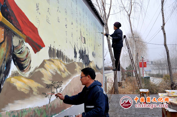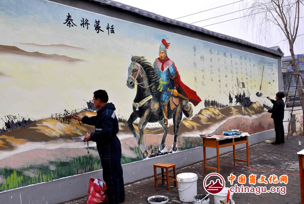 崮文化网讯 连日来,山东省蒙阴县联城镇和恬村文化广场上,以中华第一勇士蒙恬大将为主题的文化墙正在紧锣密鼓的绘制,已然让人眼前一亮。