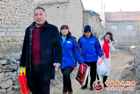 崮文化网讯 近日,蒙阴县鑫和油品有限公司到所帮扶的第一书记村联城镇鸿禧庄社区开展新春走访困难群众活动,共送去慰问金1000元以及米面、茶叶等生活用品,为困难群众送上新春的祝福。