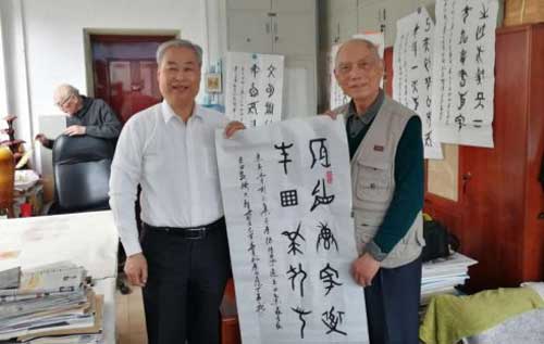 崮文化网讯 俗话说,春雨贵如油。公元2019年3月20日上午,久日干旱的泉城突降小雨,年方80岁的著名德艺双馨书画艺术家、教育家、齐鲁工业大学资深教授吴玉田先生如约登门自临交流东夷文化和骨刻文研究,可谓及时雨了。山东工艺美术学院吴玉生教授、当代美术家网白传峰总经理陪同教授交流研讨。