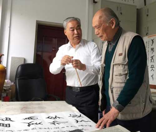 吴教授对东夷文化和骨刻文字研究极为关注,认为东夷文化在中华文明进程中具有源头地位,特别是骨刻文字是记录语言和历史的符号,是证实文明起源的重要依据,在东夷文化中位置极其显赫。吴玉田教授饶有兴致的观看了骨刻文实物和原图,听取了丁再献关于骨刻文的破译解读方法和过程,对解读进行了认真的点评,给予了充分肯定并高度评价。同时根据骨刻文原图对照甲骨文、金文、小篆和隶书演变过程,对一些文字提出了保贵的指导性意见。