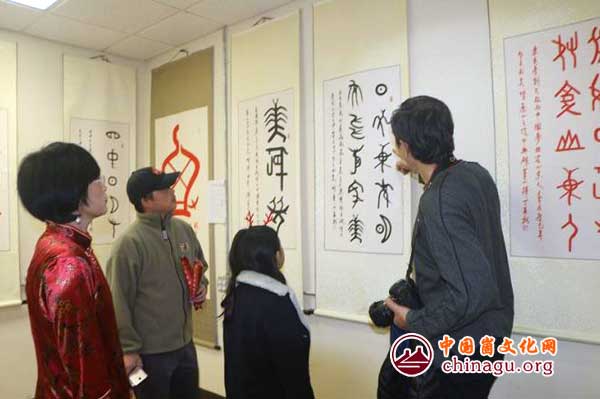 据介绍,展出活动由教堂山市中文学校主办、美国北卡罗来纳州中美友好协会和教堂山市政府协办,重点展示在中国山东省集中出土发现的东夷骨刻文临摹文字和书法艺术创作作品。丁再献和丁再斌还出版专著将破译方法和过程写出来,为便于人们识别,每字前还附有骨刻原图。鉴于丁再献的重大贡献和独一无二的骨刻文书法艺术,深受人们的喜爱,借教堂山市元宵节举行“Light Up”仪式的机会,把作品展现出来供人们欣赏,吸引了众多市民争相前往一睹这一神秘而古老的文字。