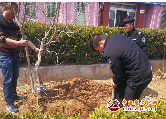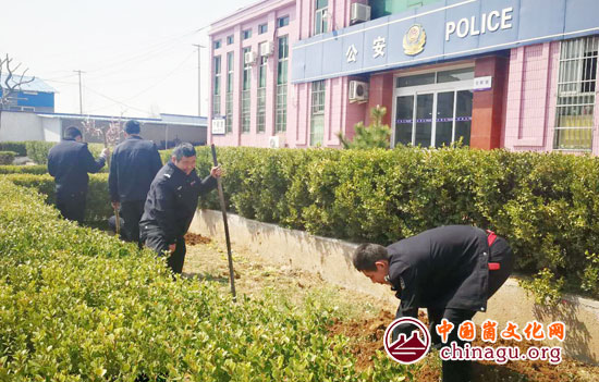 崮文化网讯 为进一步绿化美化警营环境,营造良好的工作生活环境。近日,蒙阴县公安局野店派出所开展“春到警营”绿化提升活动。