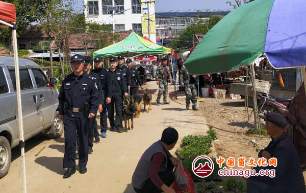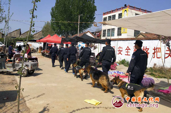 崮文化网讯 4月18日,恰逢旧寨大集,蒙阴县公安局旧寨派出所联合县局警犬训练中心组织民警、辅警,携带警犬,到旧寨集市开展巡逻,震慑违法犯罪,增强群众安全感,收到良好效果。