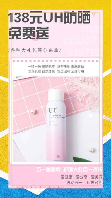 活动一:99元爱心卡尊享店内七项特色项目,总价值1680元。 活动二:千元大礼包一折购,且天猫售价138元抖音同款UH防晒喷雾免费送,仅限20名。 活动三:开业当天299元肩颈开背理疗卡全年不限次数,仅限10名。 活动四:开业期间所有店內项目全场享受八折优惠。 活动五:凡每天转发朋友圈三次不限天数,即可到店领取精美儿童玩具或自选店内项目。老顾客每带一位新顾客即可尊享豪华项目一次,店内自己任选。 开业期间,优惠多多,惊喜不断,充值更有豪华大礼,赶快行动起来吧!抢到就是赚到。 活动时间,2019.4.27号至5.5号。