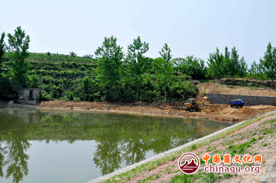 在小庄水库除险加固工程现场,工人们正顶着炎炎烈日加紧对水库坝体进行修护。数辆大型机械正协同配合对坝体进行护砌加固。前期施工队伍已完成溢洪道疏通建设。据悉,联城镇两座小型病险水库除险加固工程投资200余万元,预计15日前全部完成水库除险加固工程施工任务。