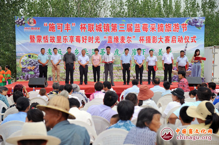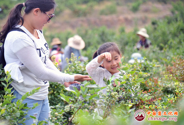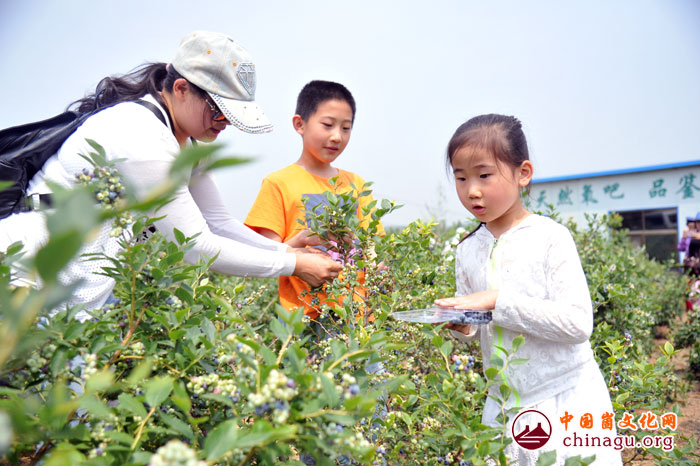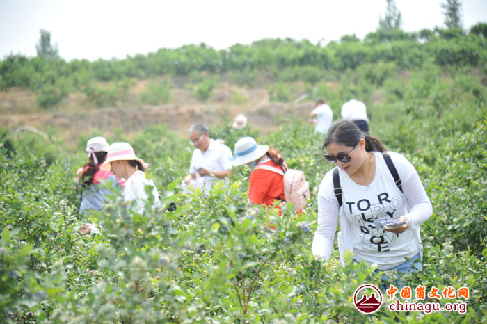 崮文化网讯 6月16日,山东省蒙阴县联城镇第三届蓝莓采摘旅游节盛大开幕。来自各地的游客走进蒙恬故里美丽的田园,尽享蓝莓采摘乐趣。(丁军国 摄)