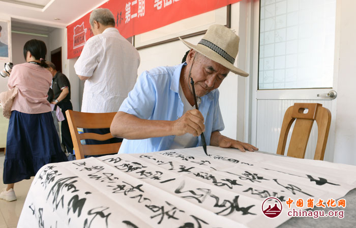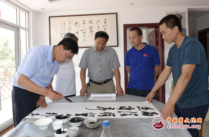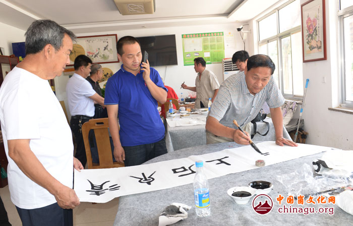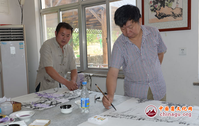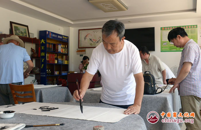 崮文化网讯 6月23 日,由山东桃乡公社酒业有限公司冠名,中国崮文化网《能工巧艺》主办,蒙恬故里书画院承办的“桃乡公社”杯第二期笔祖遗风高端书画笔会在蒙山百泉峪福泉山庄隆重举行。