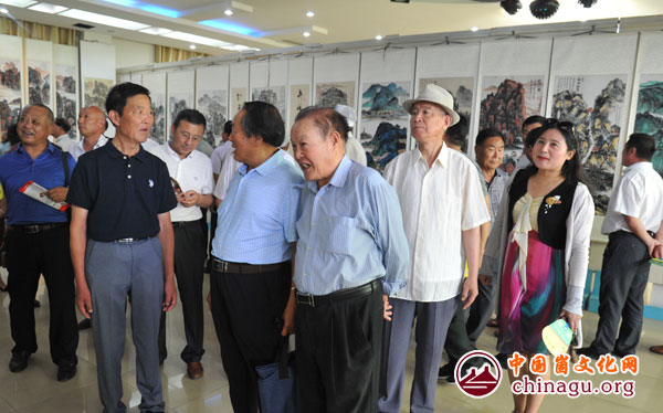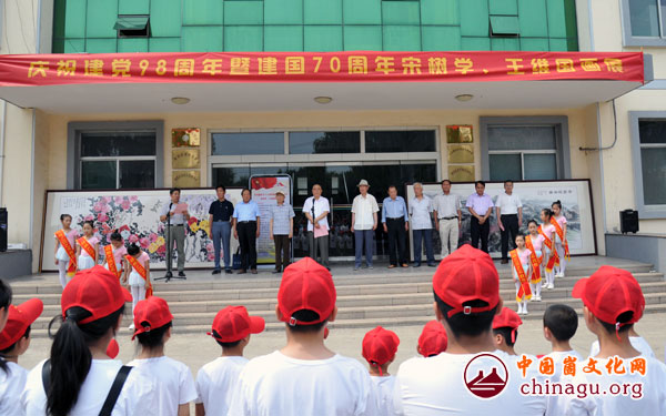 崮文化网讯 6月15日,山东省蒙阴县在该县老年大学举办庆祝建党98周年暨新中国成立70周年宋树学、王维国画展。县老领导薛庆德、傅家传出席开幕式。