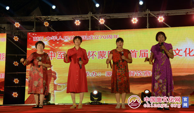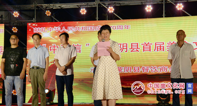 崮文化网讯 7月26日晚,“中至信”杯蒙阴县首届美食文化节走进桃墟文艺晚会在前城村千楸文化广场隆重举行。桃墟镇党委宣传委员王春梅,中国烹饪大师、蒙阴县餐饮商会会长张卫忠,中至信全屋家居定制总经理王庆东及中国崮文化网、临沂音乐文学专业委员会、蒙阴远方传媒负责同志出席活动。 生态蒙阴,美食飘香。晚会上,大家载歌载舞,将美食文化融入其中,让观众在美丽的金水河畔享受了一道丰盛的文化艺术盛宴。(丁军国)
