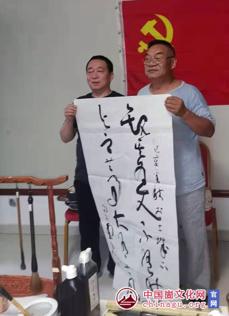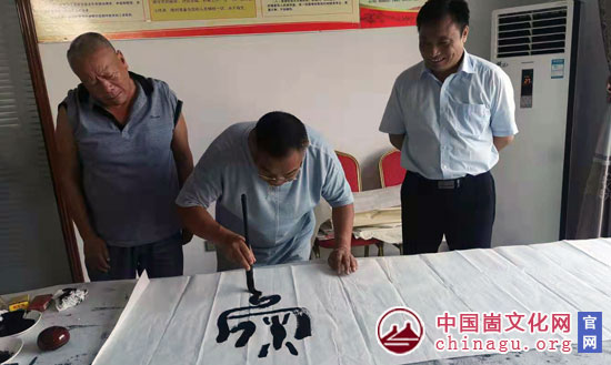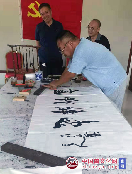 崮文化网讯 八月的莲花山秋高气爽,风和日丽,给国庆增添了喜庆。为庆祝中华人民共和国成立七十周年,10月3日,新泰龙泉林场特邀著名书法家杨承胤先生,郑宾老师在莲花山农场基地举办了一场书画笔会。书画家们现场挥毫泼墨,以书法寄情怀,以清新高雅的笔墨描绘着美好的生活,用不同的笔法表达了大家相同的爱国之情。 龙泉林场董事长李长征及嶅山书画院负责人参加活动。