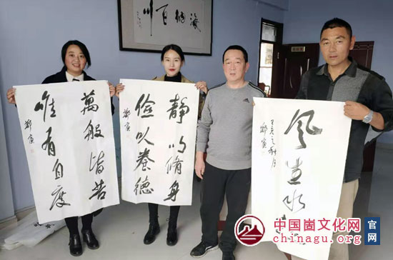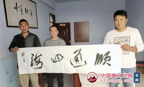 崮文化网讯 10月21日,新泰市顺通物流有限公司邀请书画家走进企业,举办小型笔会。现场,书画家挥毫创作,一幅幅精美的书法作品跃然纸上,令员工们赞叹不已,为公司企业文化发展增添了一抹亮色。山东省书协、美协会员郑宾,嶅山书画院院长付佃明,顺通物流有限公司总经理孙西平等参加笔会。