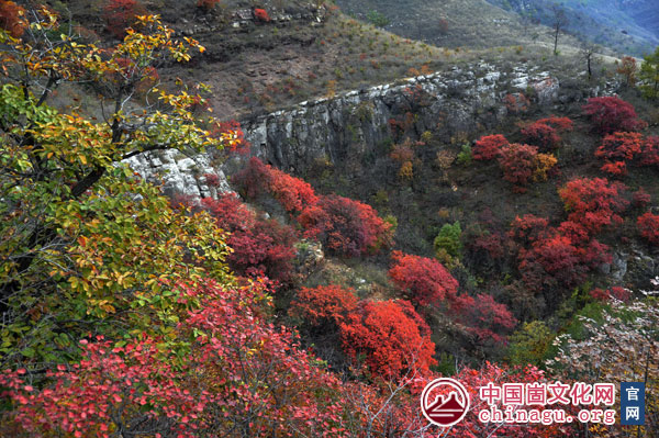 山谷红烂漫,丹霞冲霄汉。山巍水潺晴空碧,祖国好河山。 四时景色异,心境几变换。游人如织俱喜悦,盛世尧舜天。