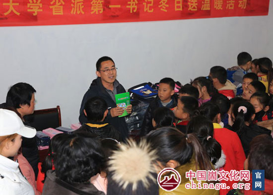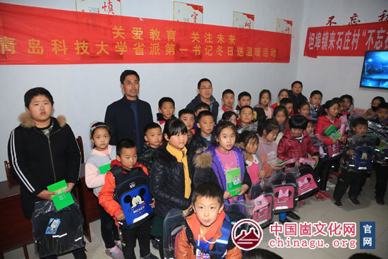 崮文化网讯 11月14日,青岛科技大学省派第一书记在蒙阴县坦埠镇来石庄村举办爱心书包捐赠活动。