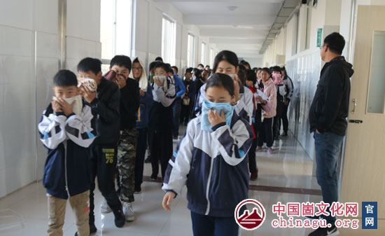 上午9:50分,随着消防警报声准时拉响,演练教师迅速到达指定岗位,引导教学楼内同学快速疏散,同学们用毛巾捂鼻,弯腰低姿,1000多名学生快速有序的按疏散路线撤离至安全地点。