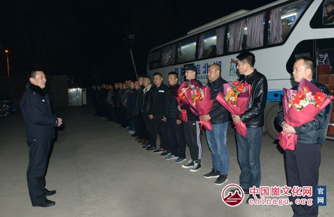 在迎接仪式现场,24名涉嫌电信诈骗的犯罪嫌疑人被逐一从车辆上押解下来。县政府副县长、公安局局长李守东与参战民警一一握手,代表局党委向风尘仆仆的专案组民警献花,并作了重要讲话。迎接仪式结束后,县局迅速组织警力将犯罪嫌疑人羁押看守所,接受进一步审讯。