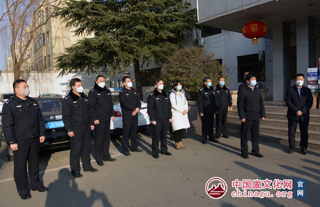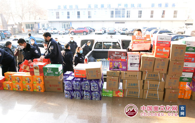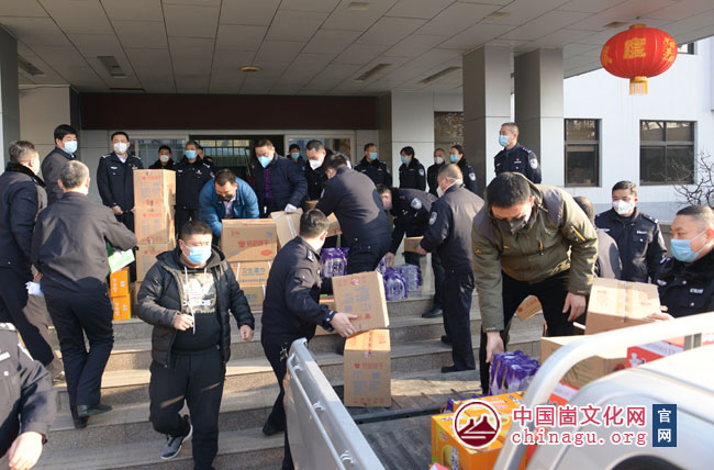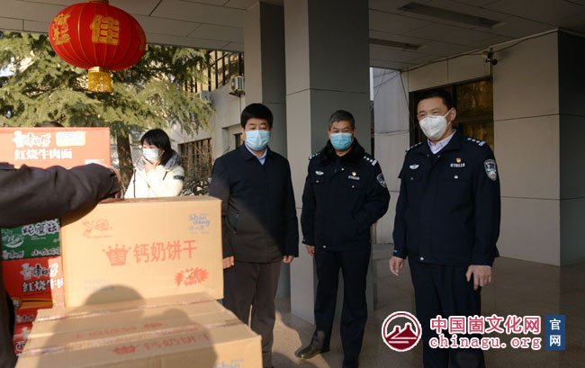 崮文化网讯 1月31日上午,蒙阴街道办事处党工委书记田洪收、办事处主任李宗民、人大工委主席姬雁红等一行,到县公安局慰问疫情防控值班备勤的民警辅警,并送去口罩等疫情防护用品和方便面、矿泉水、压缩饼干等生活保障物资。县政府副县长、公安局长李守东,在家的局领导和部分局直单位主要负责同志参加。