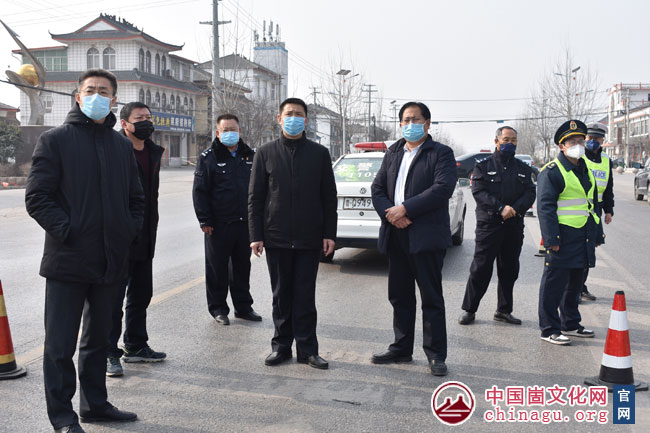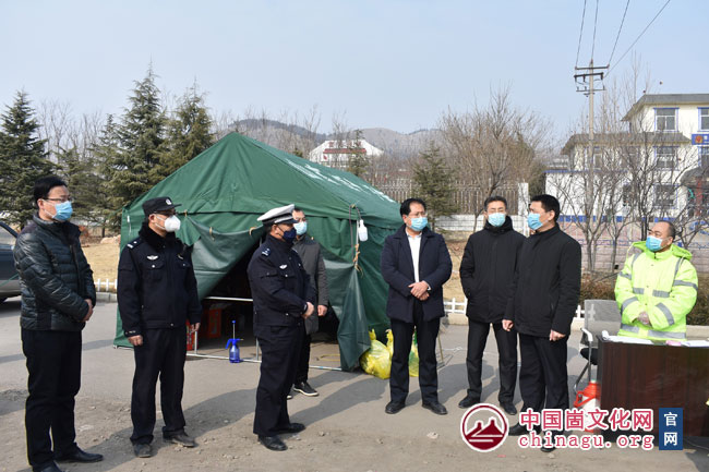 崮文化网讯 2月2日上午,蒙阴县政府副县长、县公安局局长李守东到坦埠镇县界疫情防控检查站检查指导新型冠状病毒感染的肺炎疫情防控工作,县交通局局长冯加文,坦埠镇党委书记刘德柱,党委副书记、镇长刘法伟陪同。